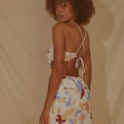 The perfect summer party print! A cute ?lil linen mini skirt crafted in a crisp white linen with a vintage inspired retro print. This is a fitted, mid rise style with invisible zipper closure.