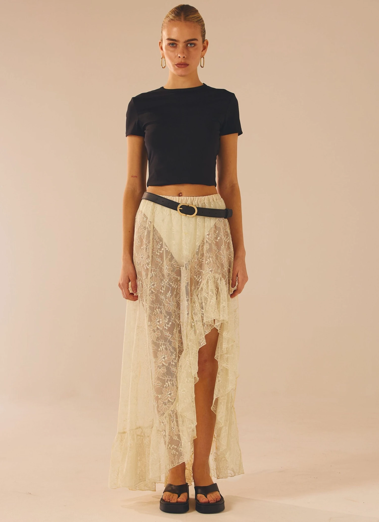 A lace fantasy! Designed with a sheer finish that’s perfect for layering with a two piece set or a bodysuit. This vintage inspired number is an easy fit and a must have this festival season!