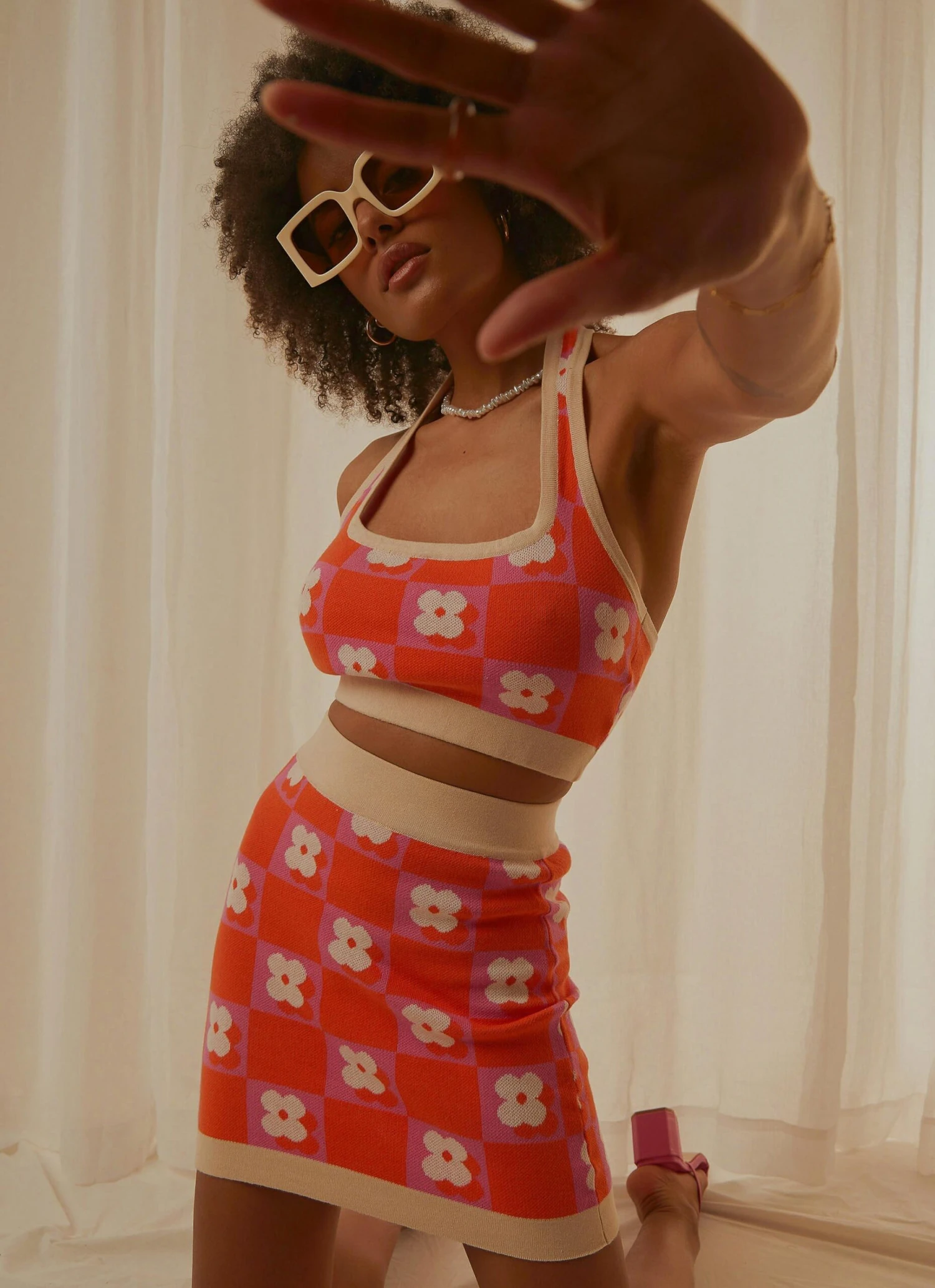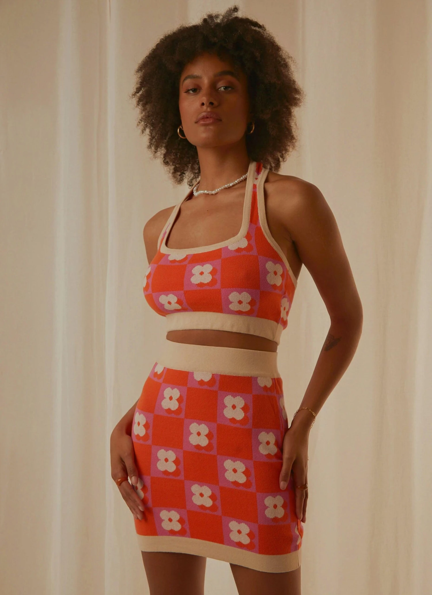 Summer vibes all year round in the cutest skirt ever! Our Flower Market Knit Mini Skirt is the perfect new addition to your wardrobe. We love this paired with the matching Flower Market Knit Crop, and platform mules or knee high boots for the full vibe.