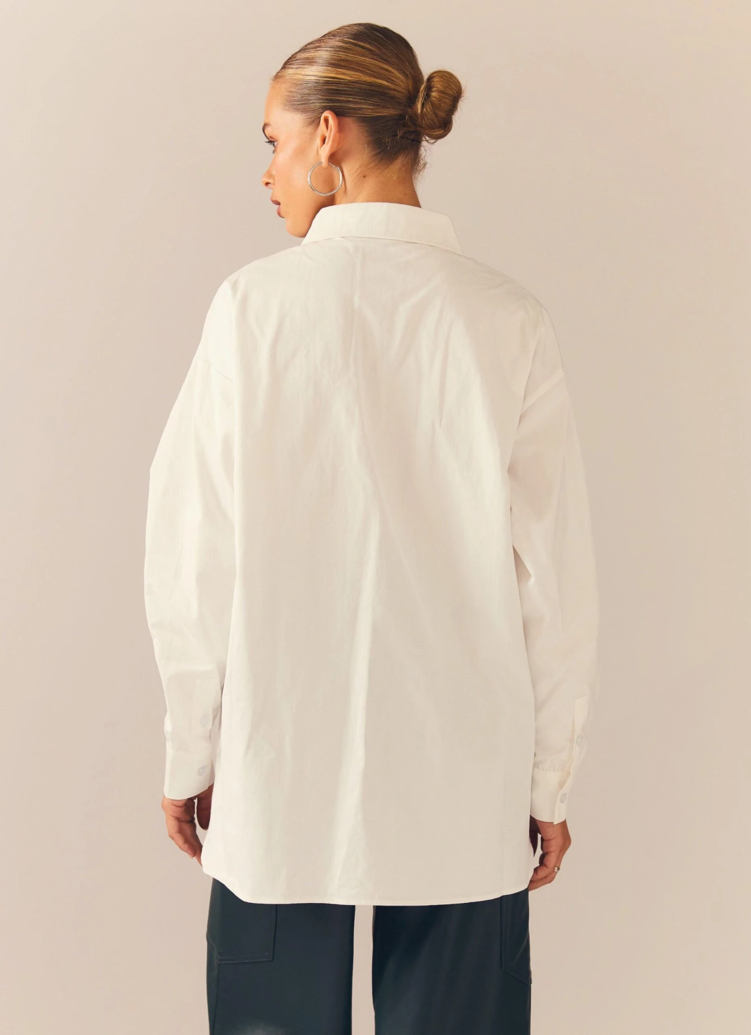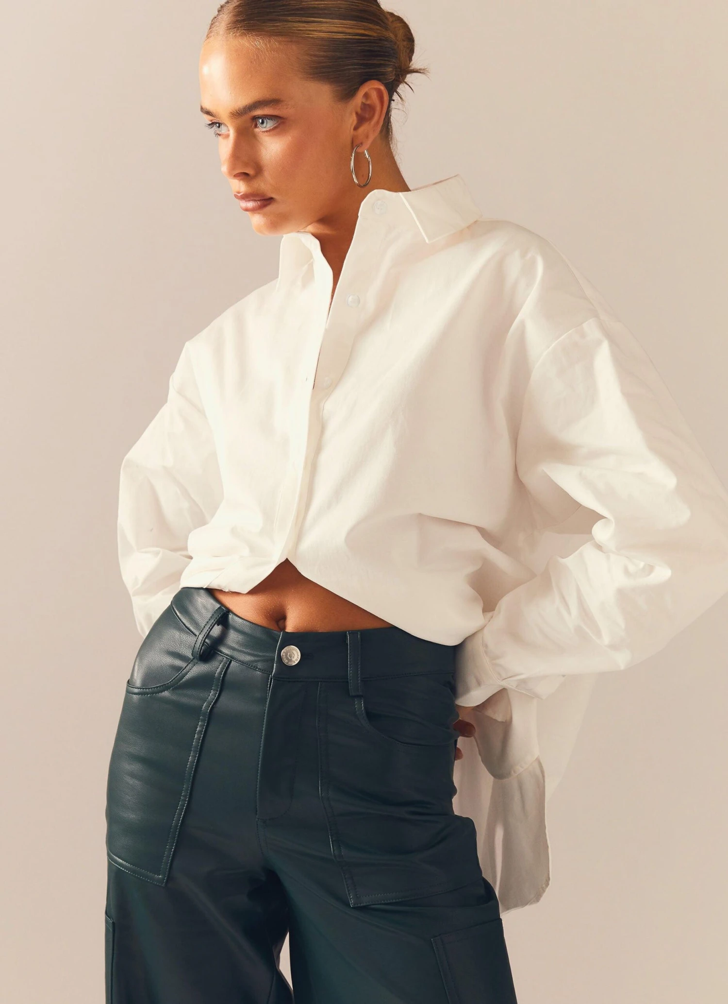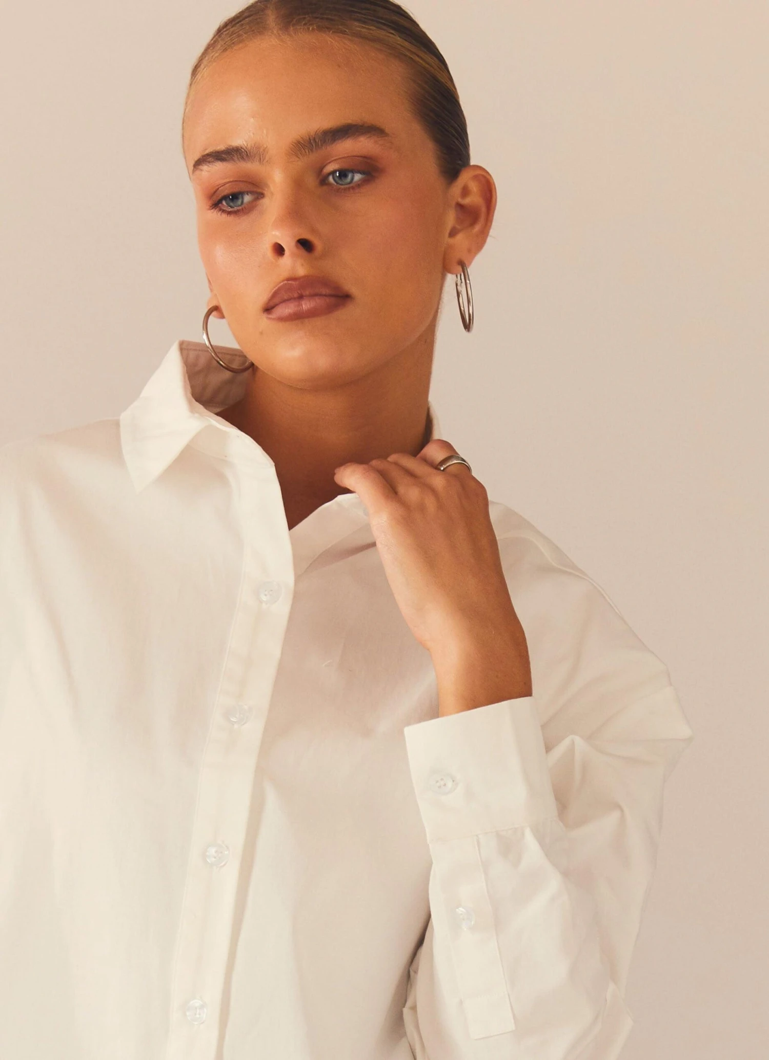 A wardrobe staple! The Glacier Oversized Shirt is the versatile piece you’ll have on contrast rotation. Crafted in soft, breathable cotton, this relaxed fit button down shirt features drop shoulders with rounded hemline. We love it styled back with the Ice Glider Pant and chunky gold jewellery.