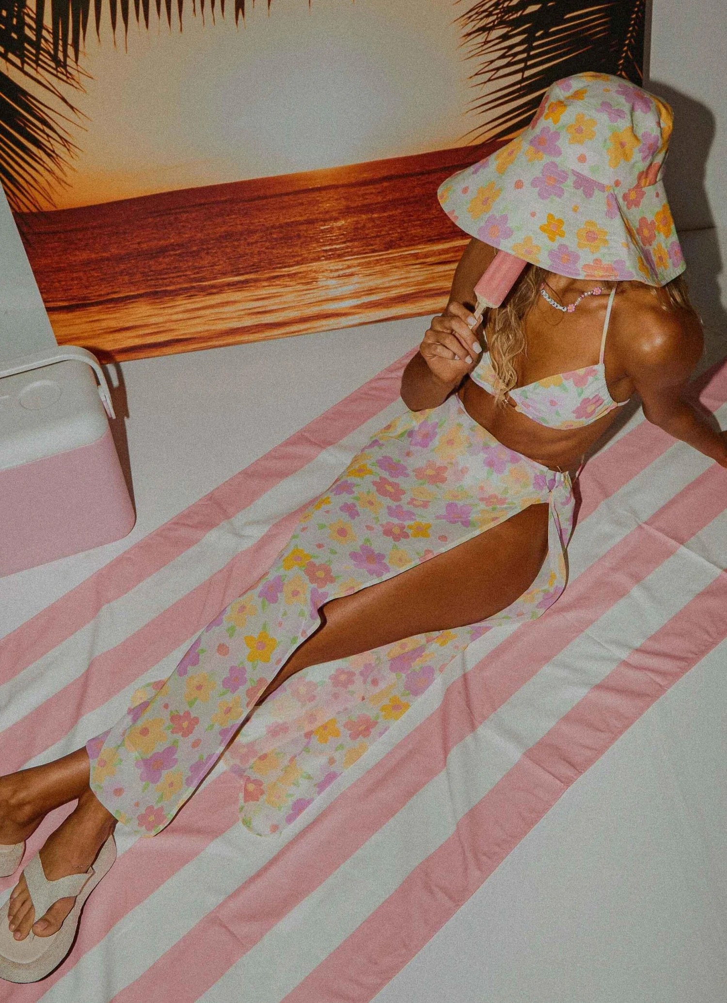 Poolside vibes never looked so cute. If you’re looking for the perfect beach cover up, we’ve got you. Our Hotel Living Sarong Skirt looks so cute paired back with the Effie Bikini Bra Top, Effie Bikini Bottom and the Sundazed Oversized Bucket Hat- taking you from the pool to lunch in total matching perfection.