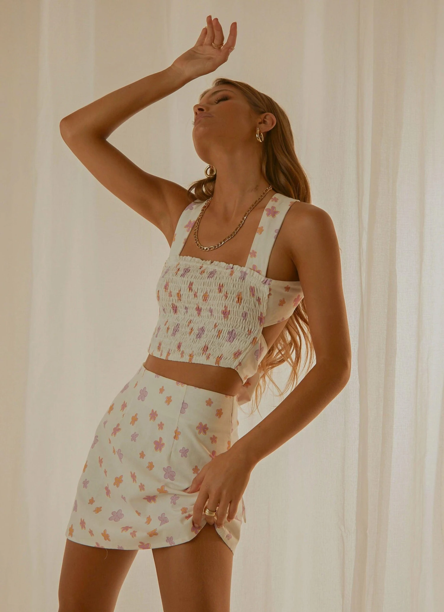 European Towns mini dress, with its gorgeous tie back detail- our Lost Picnics Crop pairs perfectly with our Morning Market Mini Skirt. The perfect look for sunset cocktails overlooking the ocean.