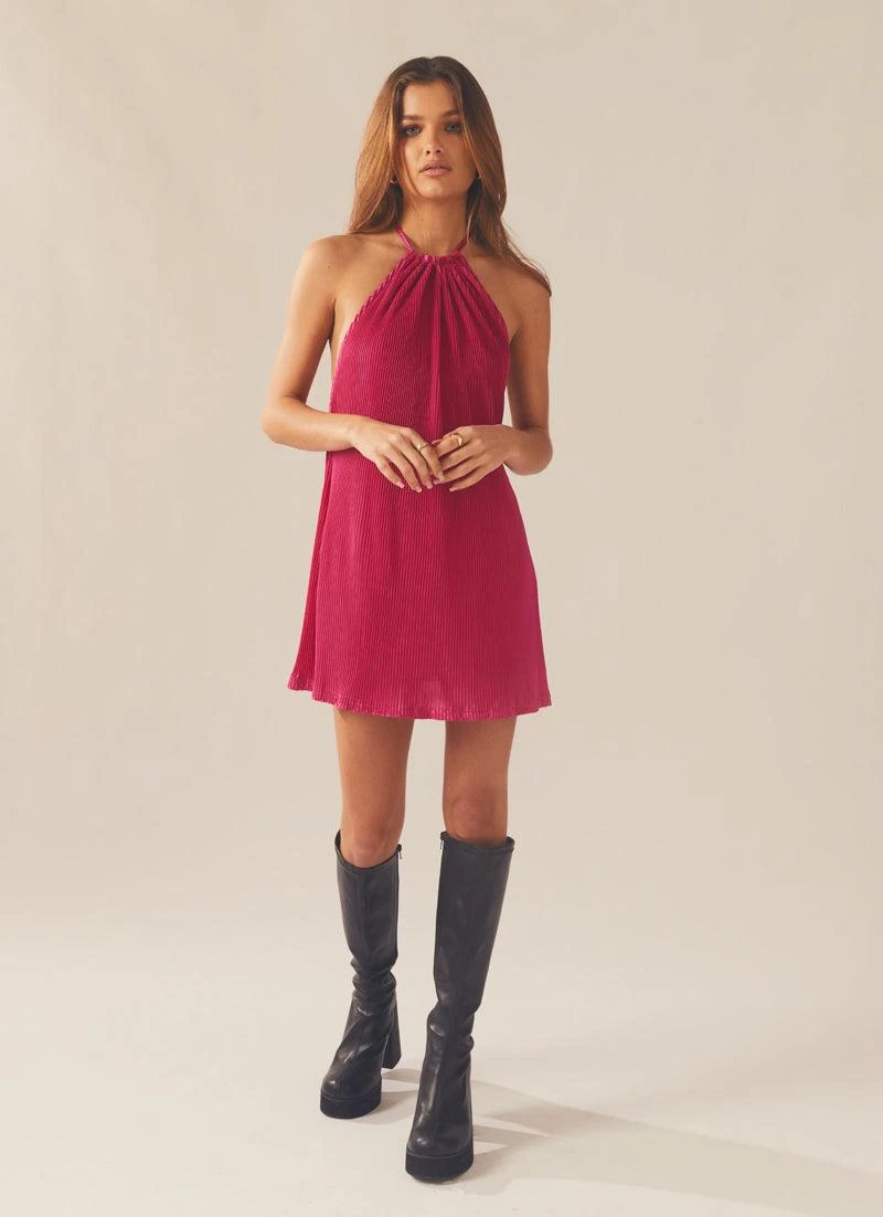 Girl, you’re a show stopper! The Love From Europe Halter Dress has been crafted in plisse fabric in our eye catching magenta colour. This cute ‘lil mini has a sexy low back and high neckline with halterneck closure. Easily styled with your favourite mules or heels.