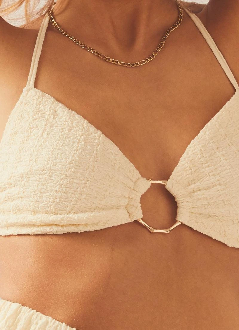The limit does not exist! The Love Without Limits Top is a super cute halterneck crop top crafted in a textured fabric and featuring a gold o-ring detailing between the bust. Perfectly paired with the Give Me A Feeling Pants for cocktail o’clock!