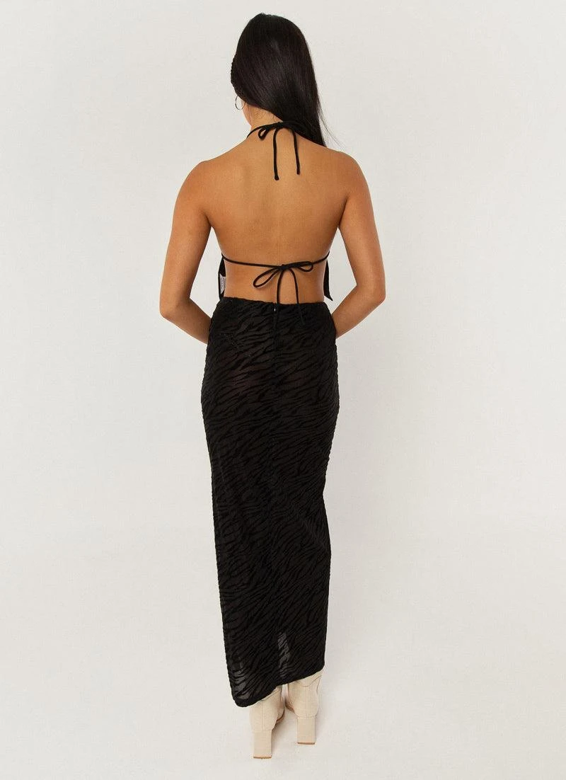 A strappy little halter neck is always a good idea! The Mystic Halter Top features silver hardware detailing between the bust and a sexy open back with single strap tie .Complete the look with the Cosmos Mini Skirt and layered jewellery.