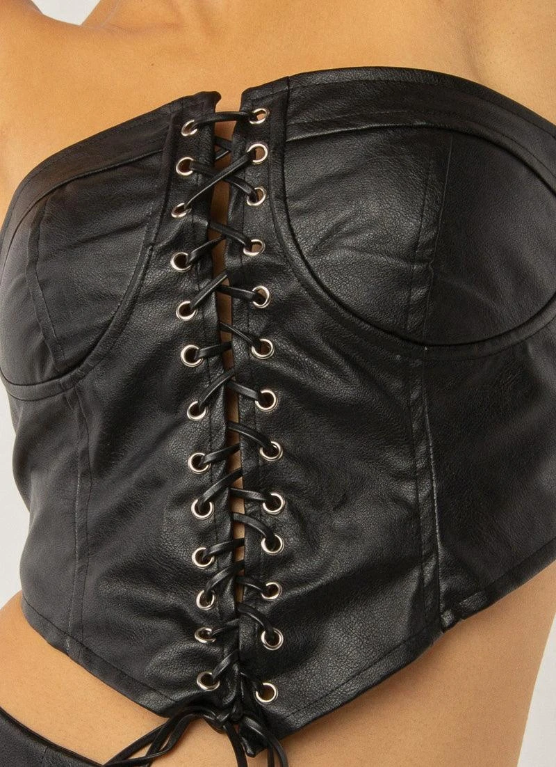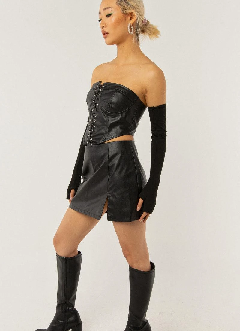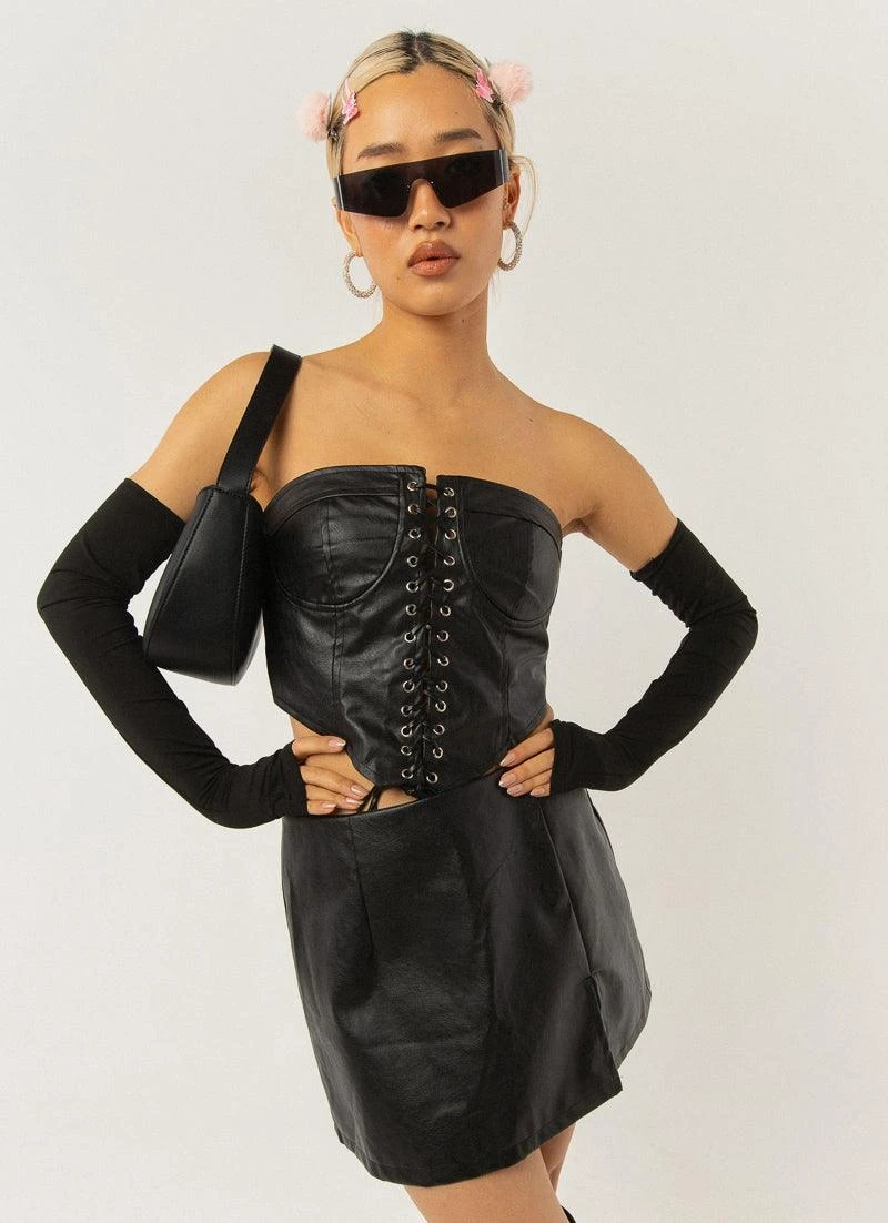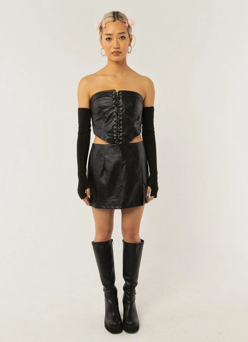 Girl, you’re about to get a whole lotta likes! The Night Turns Into Morning PU Bustier ticks all the boxes featuring lace up front, with underwire and exposed zipper closure at the back. Complete the look with the Change of Tune PU Skirt and your fave festival boots.
