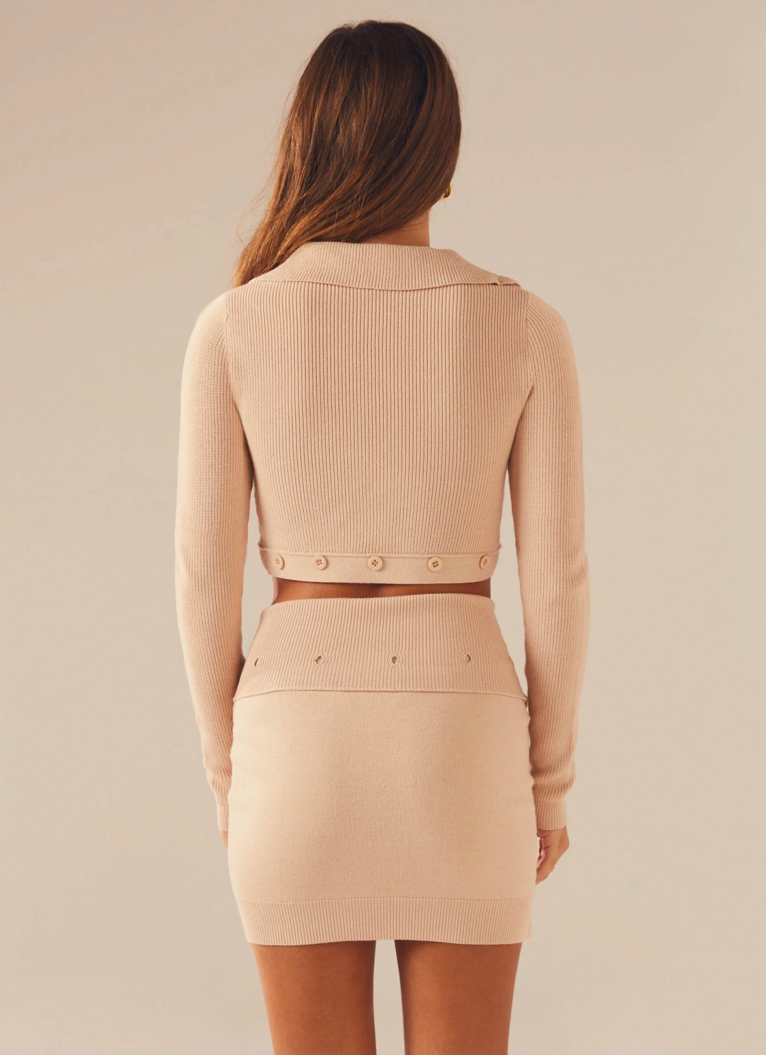Fall in love with the Peyton Knit Button Dress. This gorg mini features a front button closure, collar and buttoned slit. Keep cozy with a pair of boots and trench coat.