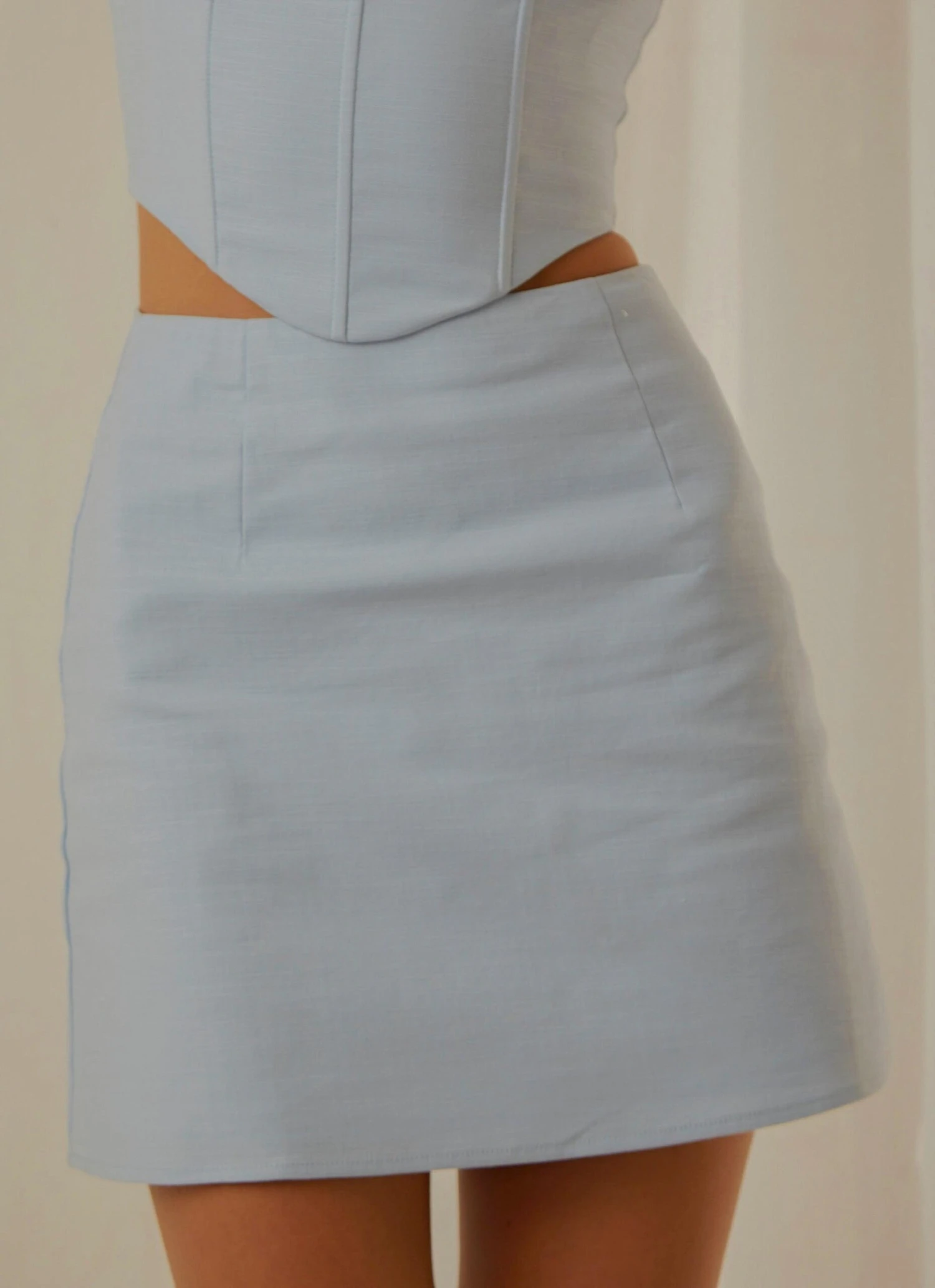 Our Rooftop Drinks Mini Skirt pairs back perfectly with the Pastel Skies Bustier Top, the perfect look for sunset cocktails overlooking the ocean.