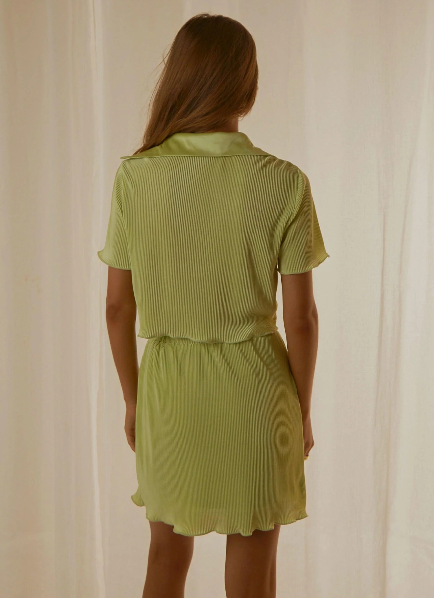 Say hello to your newest obsession, our Sundowner Crop Top. We love this crop paired with the matching Sunny Skies mini skirt, heeled mules and vintage inspired accessories.