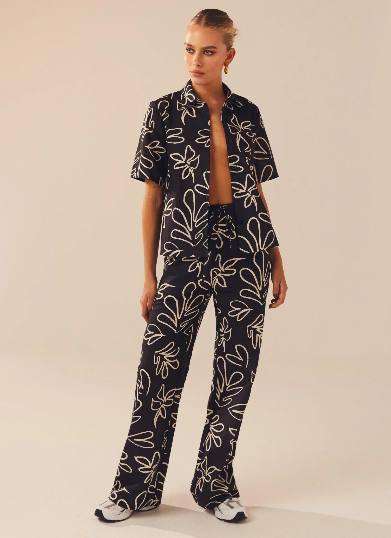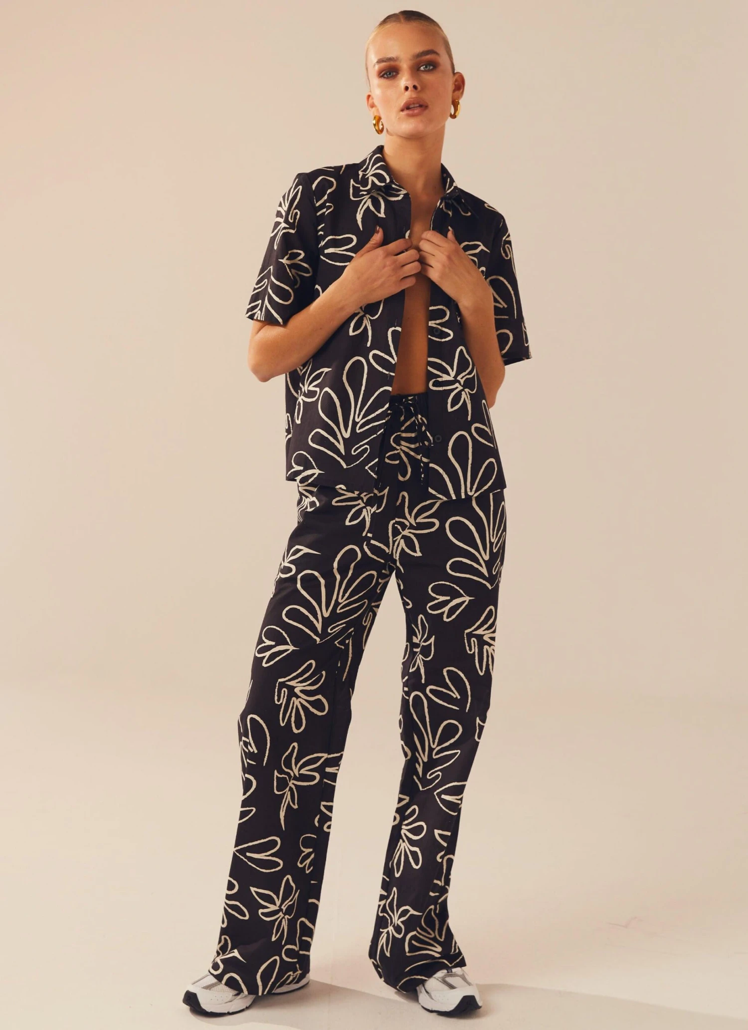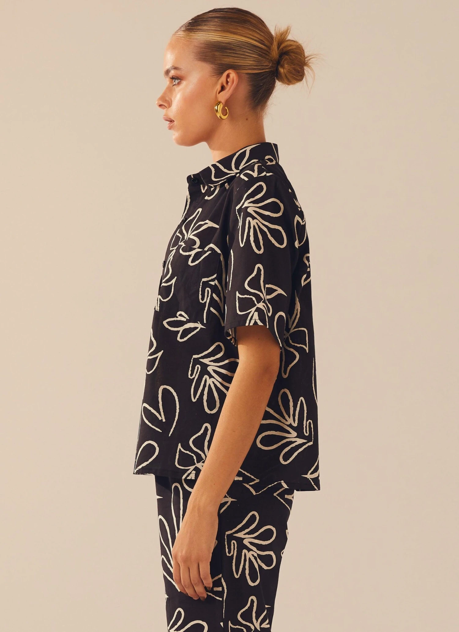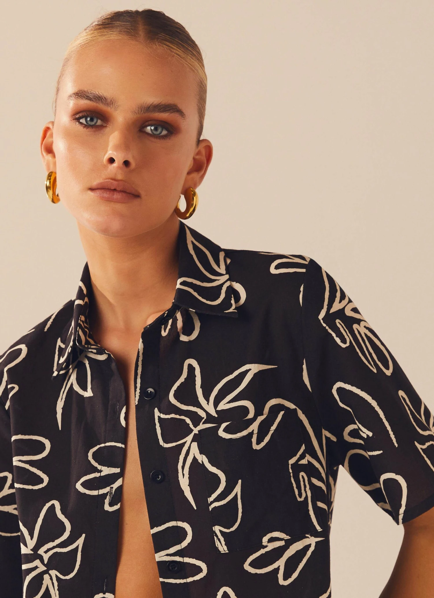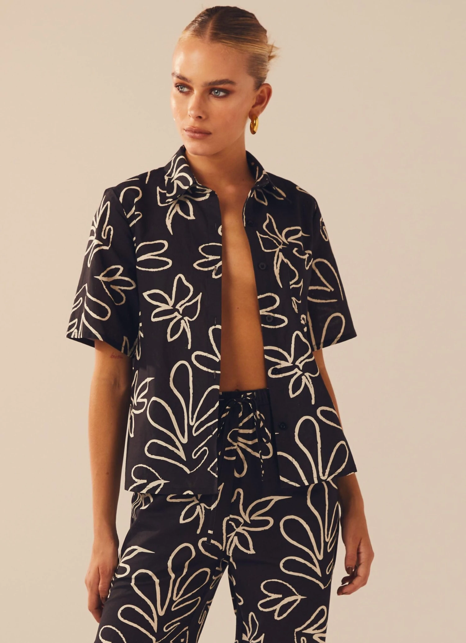 The Sunset Escape Linen Shirt showcases our exclusive PM print in the cutest new floral set. The Sunset Escape Linen Shirt is effortlessly and easy. Featuring a boxy fit, button up fastenings and a collar. Complete the fit’ with the matching Sunset Escape Linen Pant.