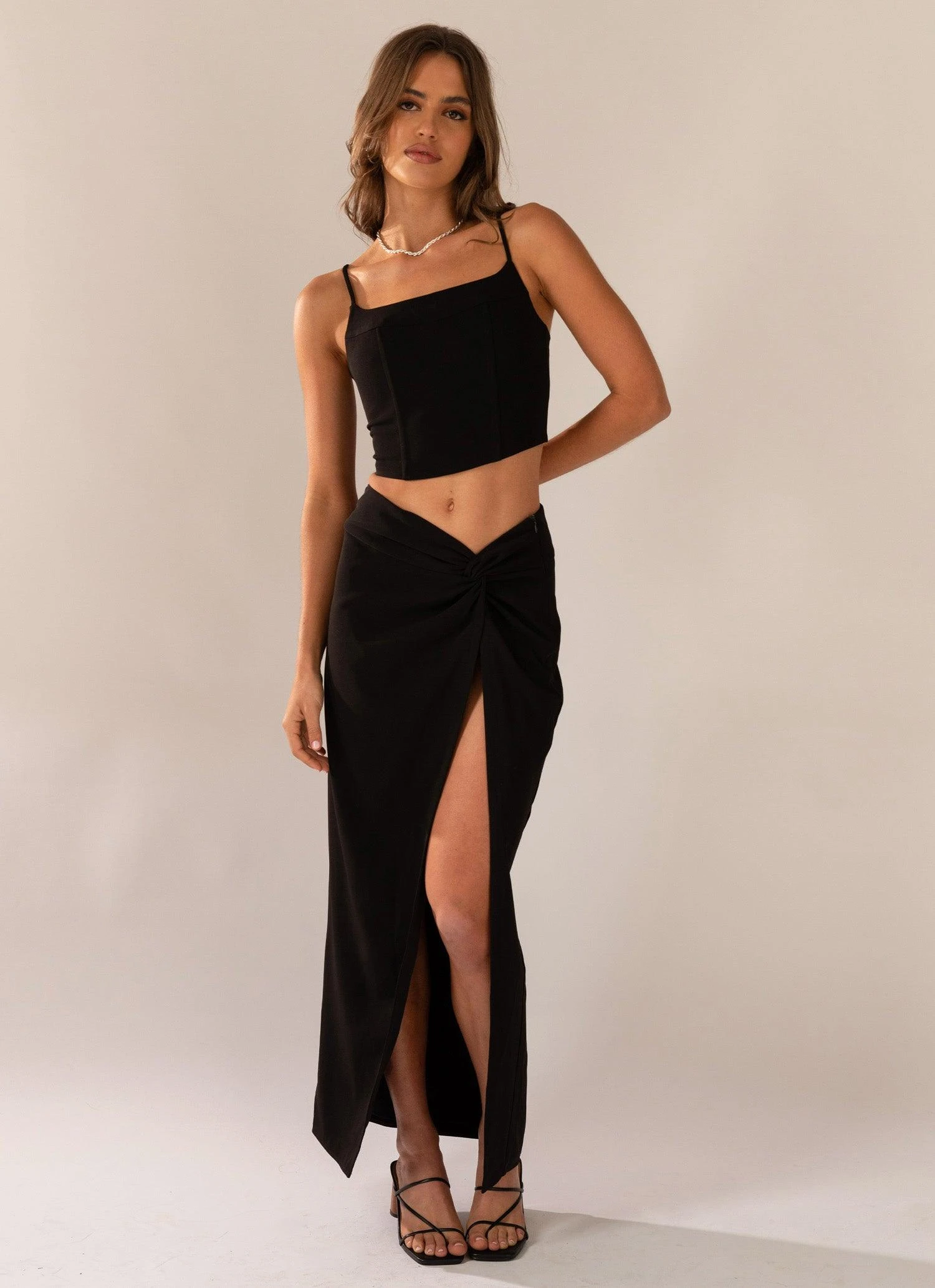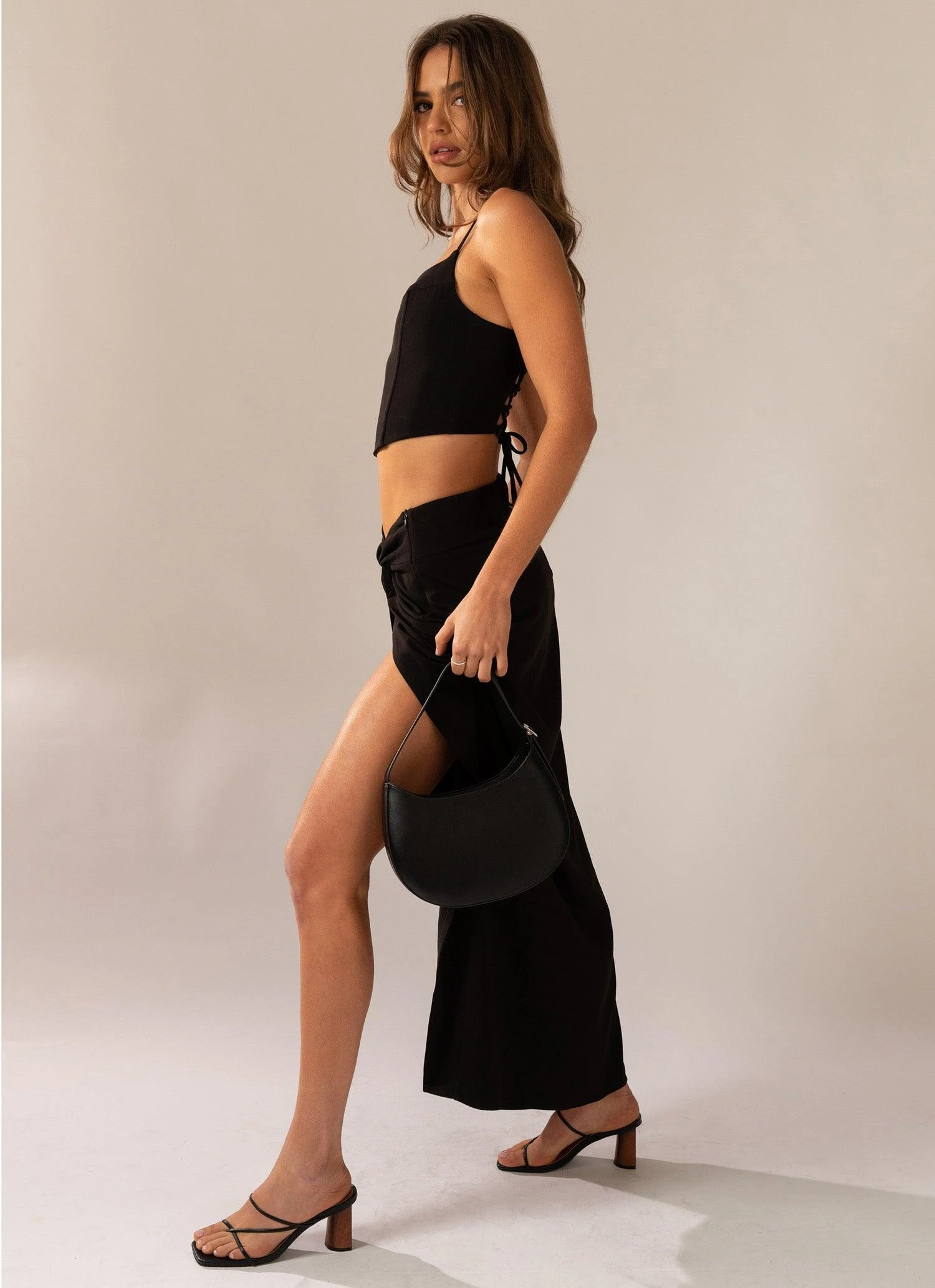 We’re bringing sexy back in the Taking Charge Maxi Skirt! Designed to be worn higher on the hips, this maxi skirt gathers on the left hip with knot detailing and split to the thigh.